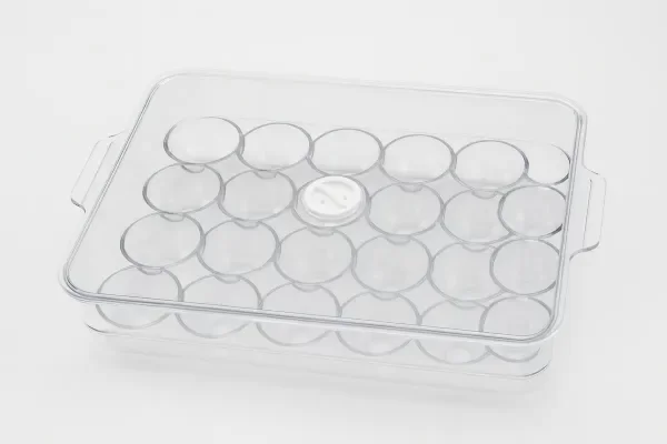 REALIZADA EN ACRÍLICO, CAPACIDAD 24 HUEVOS.