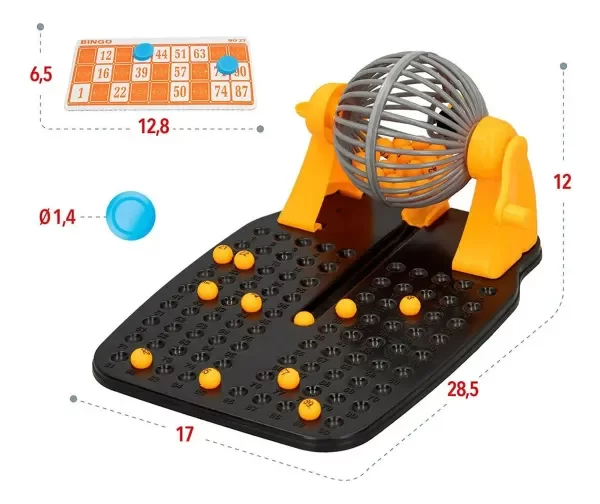 INCLUYE: BOLILLERO, 90 NÚMEROS, 12 CARTONES Y CIRCULOS PARA MARCAR