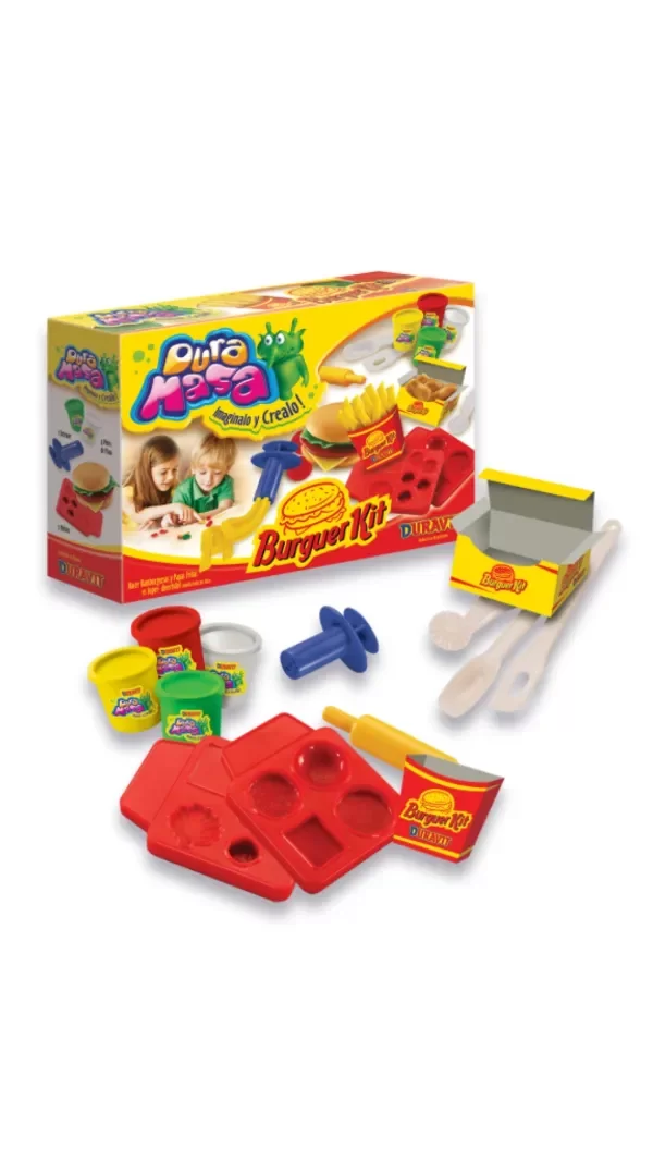 INCLUYE: 4 POTES DE MASA, 2 CAJITAS CONTENEDORAS, 1 EXTRUSOR, 1 PALO DE AMASAR, 2 MOLDES Y 3 UTENSILIOS