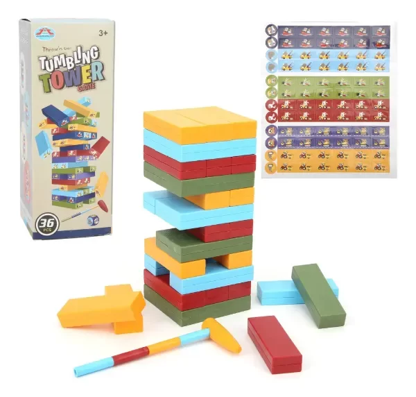 INCLUYE 36 BLOQUES APILABLES, 1 DADO Y MARTILLO