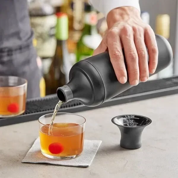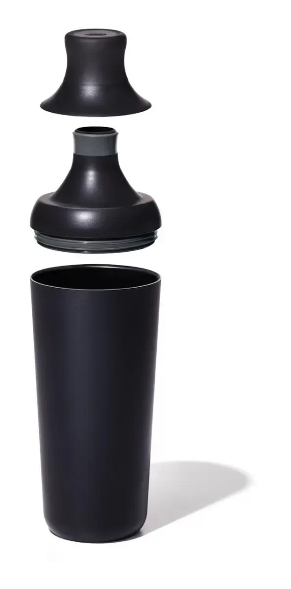 Capacidad 590 mililitros, tapa jigger graduado, colador, juntas de silicona antiderrame. Libre BPA.
